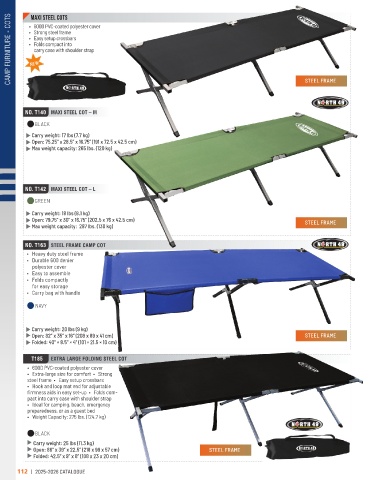 CAMP FURNITURE - COTS • 600D PVC-coated polyester cover STEEL FRAME