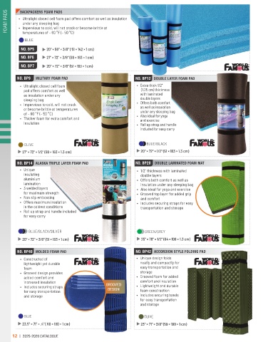NO. BP14 ALASKA TRIPLE LAYER FOAM PAD NO. BP20 DOUBLE LAMINATED FOAM MAT