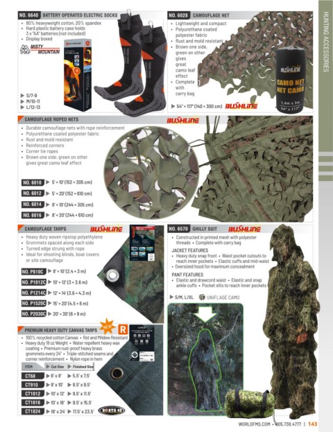 NO. 6640 BATTERY OPERATED ELECTRIC SOCKS NO. 6028 CAMOUFLAGE NET