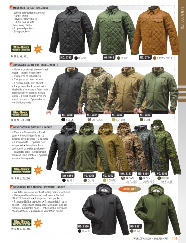M, L, XL, XXL NO. 5740 BLACK NO. 5742 OLIVE NO. 5744 BROWN DUCK