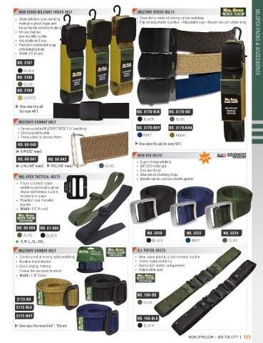• Triple stitched nylon webbing • Dress belts made of strong cotton webbing
