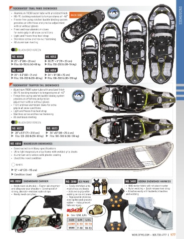 NO. 2032 SNOWBOARD CARRIER NO. 2098 ICE PAWS NO. 3405 KODRA SNOWSHOE HARNESS