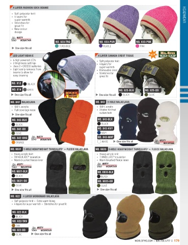 NO. 6631 1-HOLE HEAVYWEIGHT THINSULATE® + FLEECE BALACLAVA NO. 6633 3-HOLE HEAVYWEIGHT THINSULATE® + FLEECE BALACLAVA