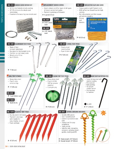 TENTS ACCESSORIES NO. 414 SHOCK CORD REPAIR KIT • Elastic shock cord for repair of all types NO. 425 REFLECTIVE GUYLINE CORD