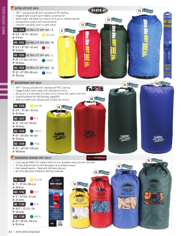 WHITE WATER BAGS • 210 T ripstop polytek with waterproof PU coating 13 20 35