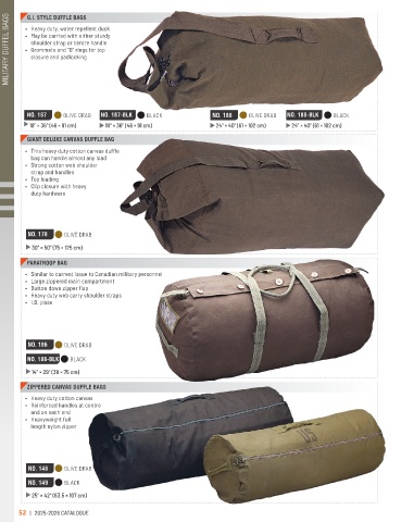 MILITARY DUFFEL BAGS • Heavy duty, water repellent duck