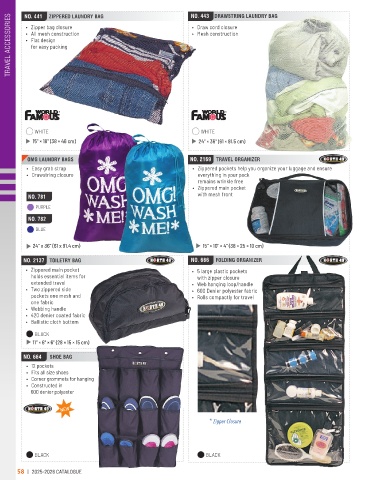 TRAVEL ACCESSORIES NO. 441 ZIPPERED LAUNDRY BAG NO. 443 DRAWSTRING LAUNDRY BAG
