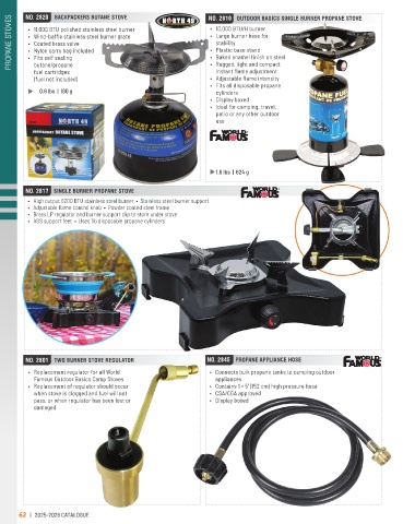 NO. 2801 TWO BURNER STOVE REGULATOR NO. 2845 PROPANE APPLIANCE HOSE