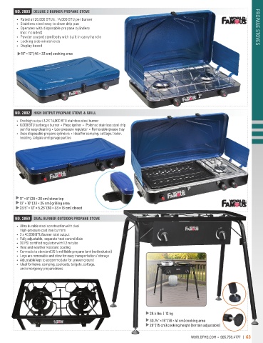NO. 2803 DELUXE 2 BURNER PROPANE STOVE