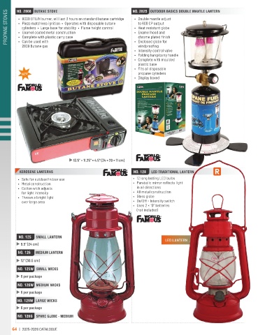 PROPANE STOVES NO. 2808 BUTANE STOVE NO. 2825 OUTDOOR BASICS DOUBLE MANTLE LANTERN