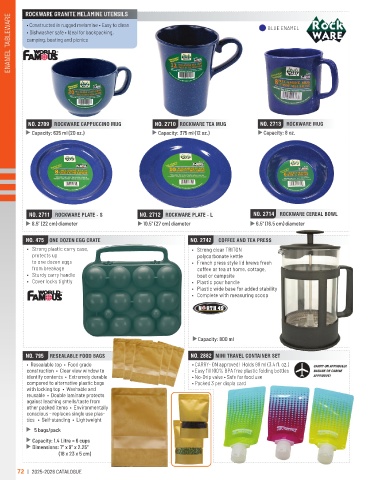 ENAMEL TABLEWARE • Dishwasher safe • Ideal for backpacking,